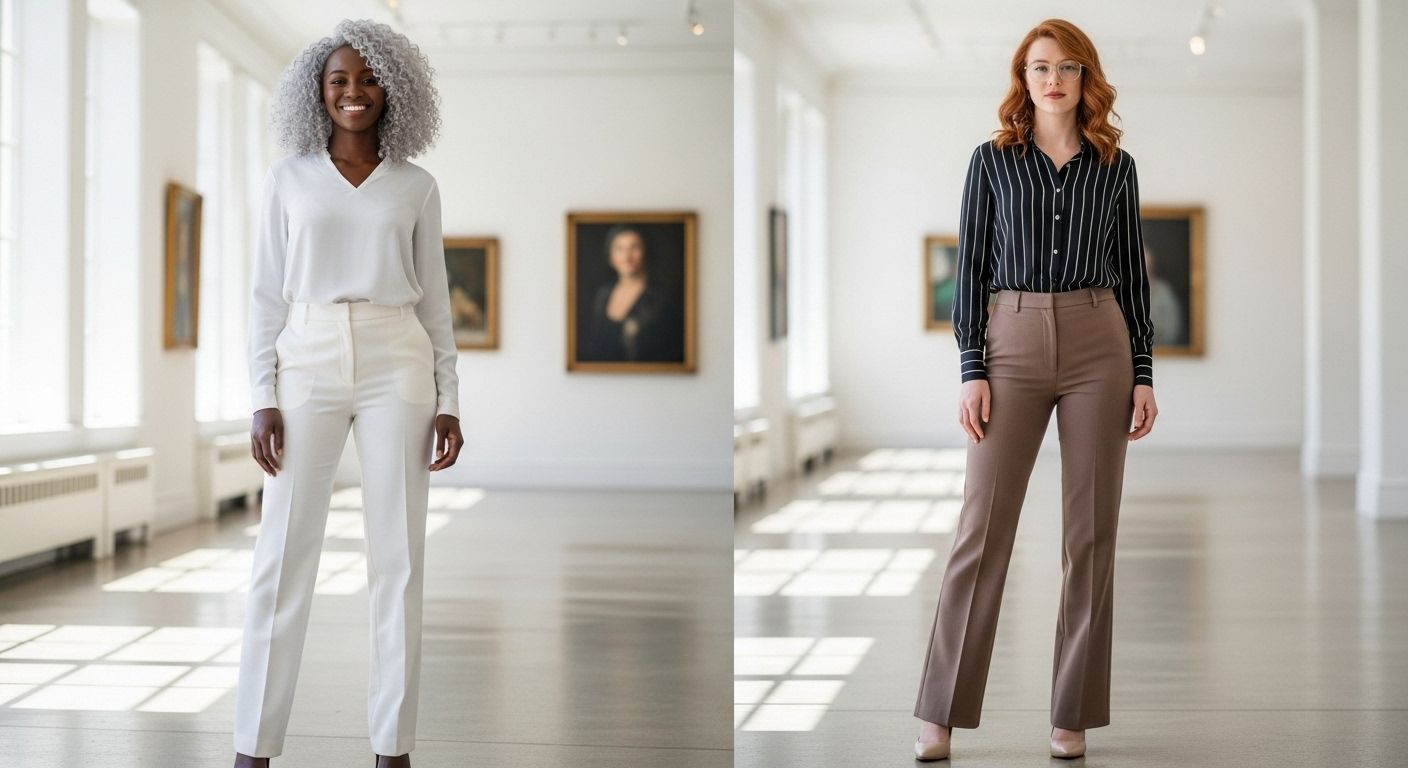 Trousers with bulky fabric ties or large bows at the waist can add visual weight where it’s least desired. The more elegant and flattering choice is a beautifully tailored, flat-front trouser. A mid- to high-rise cut that sits at your natural waist with a side or back zipper creates a clean, smooth, and uninterrupted line, elongating the torso.